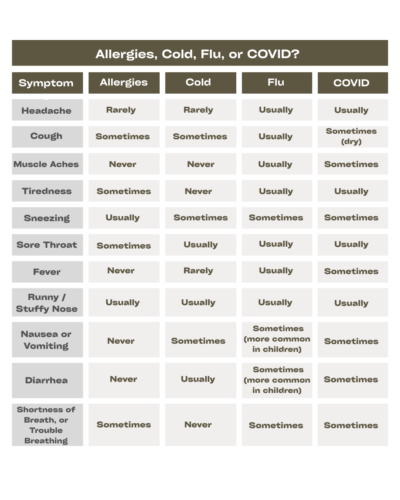 Not sure whether your symptoms mean the flu, allergies, a cold, or COVID? COVID symptoms can shift from year to year, so staying up-to-date can help you spot the signs sooner. This quick chart helps you compare the most common signs for 2025: