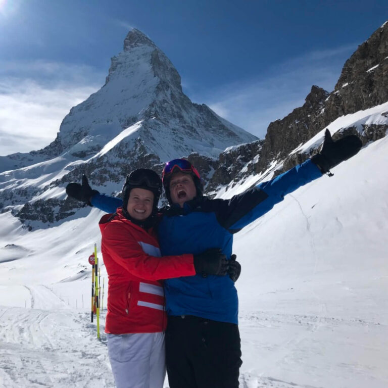 Image: Clare on her honeymoon skiing to Matterhorn
